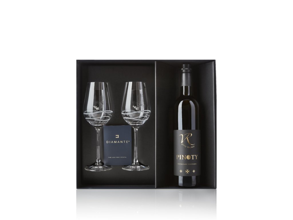 Doprajte svojim blízkym elegantný darček, ktorý poteší pri každej výnimočnej príležitosti. Táto luxusná darčeková kazeta obsahuje dva ručne zdobené poháre s originálnymi Swarovski® kryštálmi